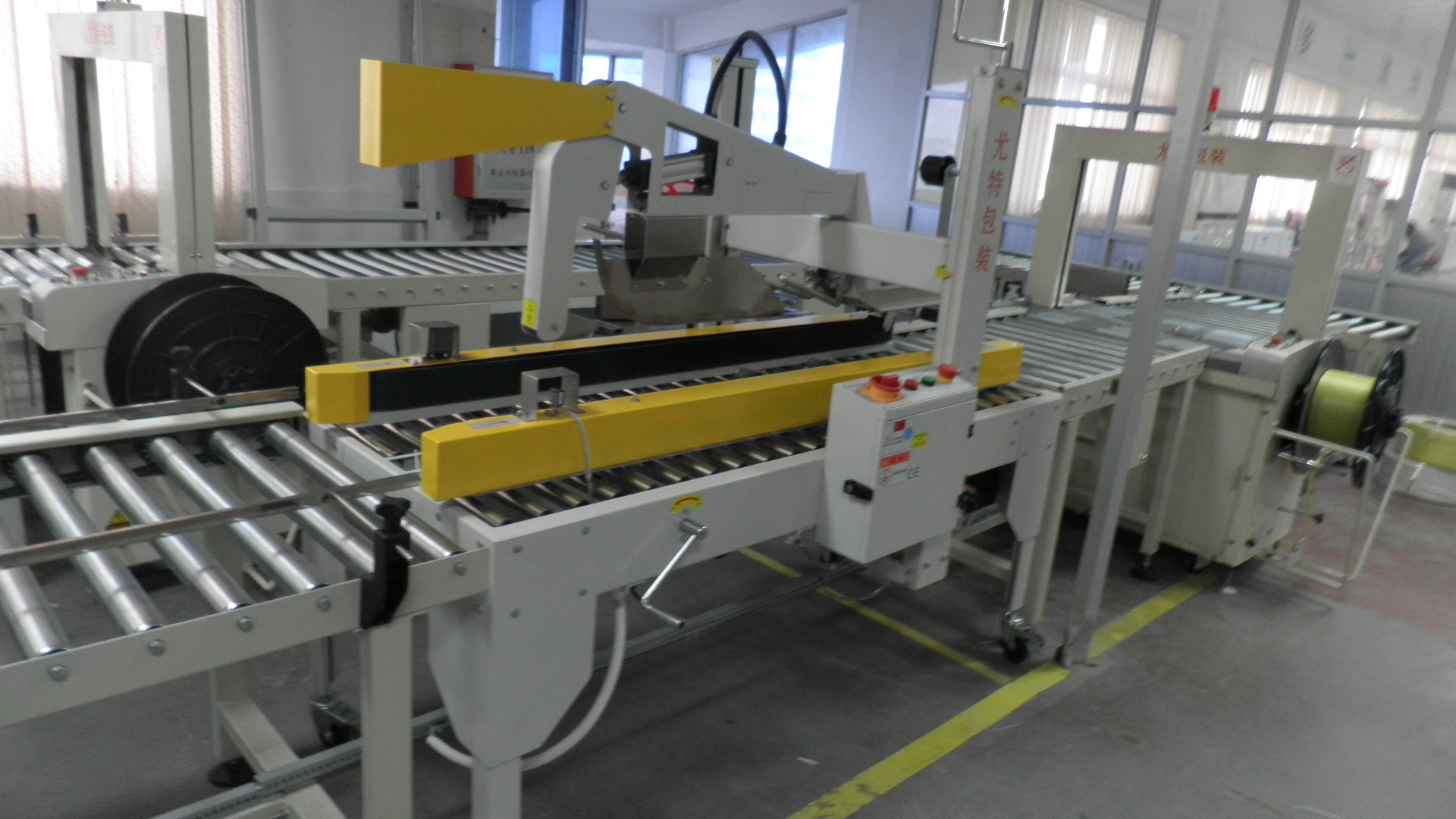 纸箱上盖及后盖自动摺入,快速平压不折角。